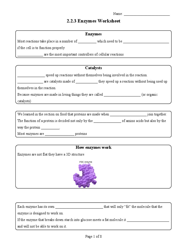 Enzyme Worksheet Answers Pdf